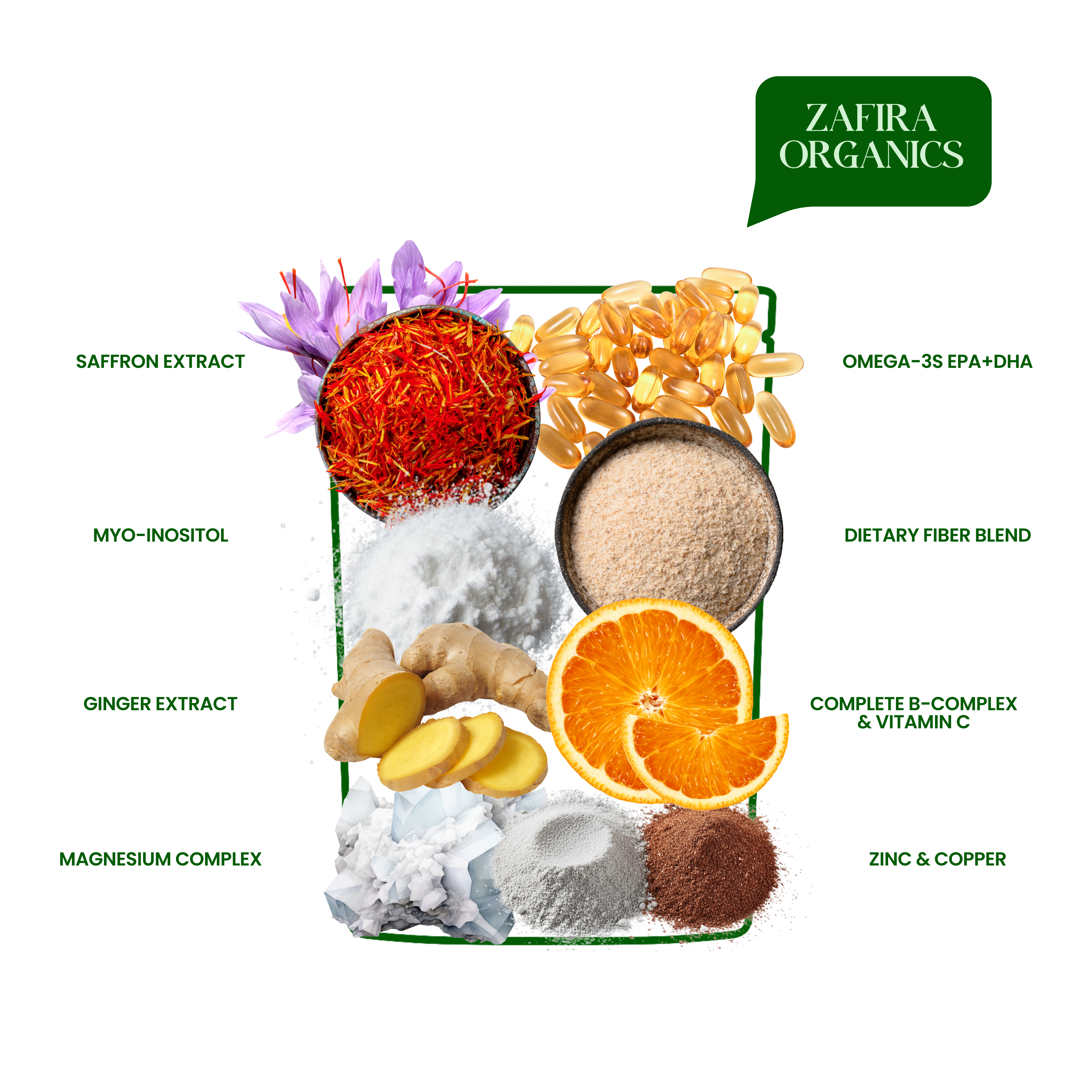 ✓ Mood: Saffron, Omega-3s, Myo-inositol